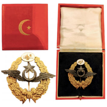 Breast Badge, 65x60 mm, Silver and gilt SIlver, multipart construction with vertical pin on the back. In original case of issue with gilt inscription on the lid. A rare piece of German manufacture. I R!