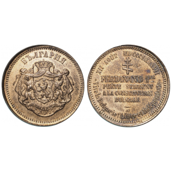 SKU: 157 Auction has finished. Total bids: 3BULGARIACopper, 9.96 g., Election of King Ferdinand. KM. Pn1, N. 111460. A splendid coin, in mint state with red-brown patina! FDC! Shop ID: PCGS2Auction LX - Day 1