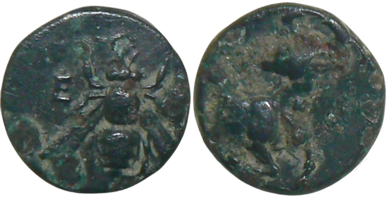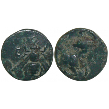 Æ (10 mm, 1.29 g, 12h). Dias, magistrate. Bee, pellet border / Stag kneeling left, head right, quiver above. Karwiese II, Series 11.4, 681, SNG Fitzwilliam 4418. Superb green patina, VF+