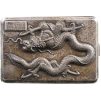 Of curved shape to better fit in a pocket, the lid embossed with a dragon and a rectangular plate engraved with the initials "M.B.", matted and gilt inner compartment, struck with the "STERLING" mark. An interesting piece, from the period of the international mission of 1900-1901 during the Boxer rebellion. Extremely fine condition, nice patina. Dim.: 80,0 x 110,5 mm. I R!