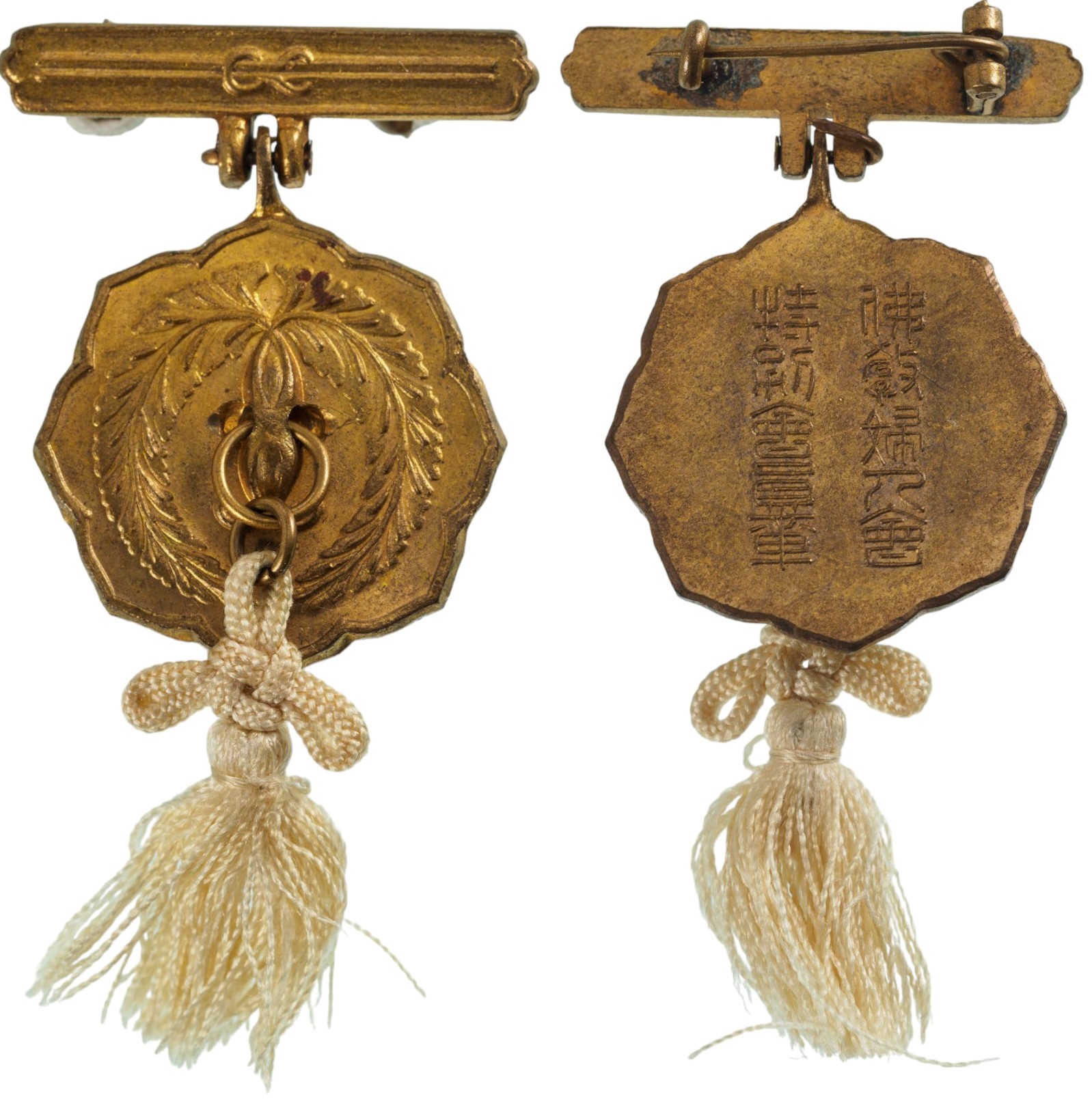 SKU: 1533 Auction has finished. Total bids: 0JAPANBreast Badge, 30x22 mm, gilt Metal, Japanese inscrition on reverse, original suspension bar with pin on the back. I Shop ID: DO 31Auction LX - Day 2