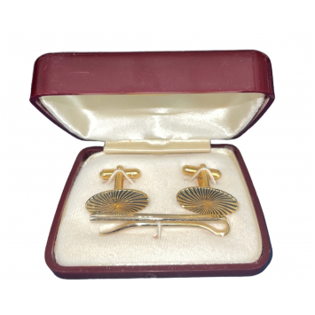 SKU: 1407 Auction has finished. Total bids: 0INTERNATIONAL20th Century Cufflinks and Tie Pin Set in Gilt Metal in original case. Very elegant! I Shop ID: 57.06.04Auction LX - Day 2