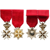 Grand Cross Set Miniatures. Breast Badge, 25x15 mm, gilt Silver, both sides enameled, original suspension crown, ring and ribbon. Breast Star, 16 mm, Silver, superimposed part enameled, original suspension ring and ribbon. A beautiful set, in mint condition! !