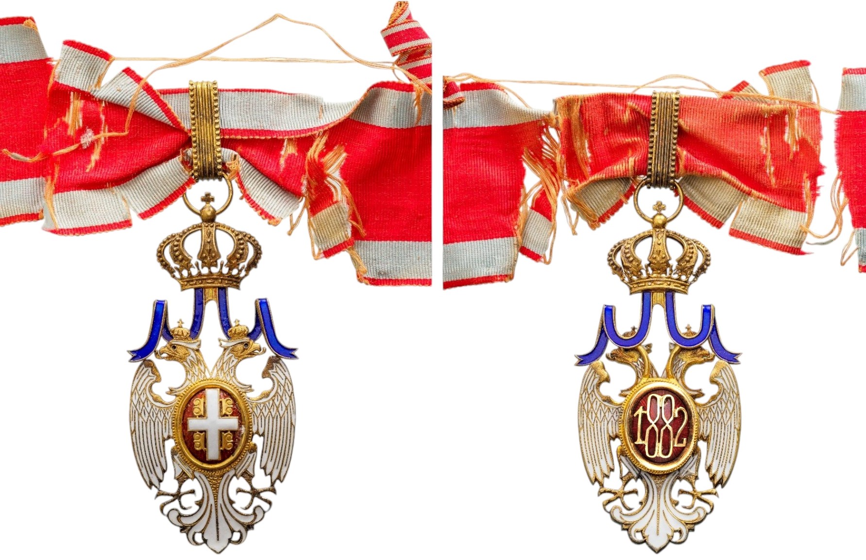 Commander's Cross Civil, 2nd Model, 3rd Class, instituted in 1883. Neck Badge, 91x42 mm, Silver, multipart construction, central medallion silver, enameled, with original crown suspension device, ring and neck ribbon, in case of issue by "Huguenin, Freres & Co. - Le Locle, Suisse" with silvered monogram on the lid. A superb large badge, in extremely fine condition! I