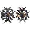 Grand Cross Breast Star from the second part of the 19th Century, 86x81 mm, diamond-cut chiselled Silver cross flanked by fleurs-de-lys, oval centre medallion with the polychrome enameled image of the Holy Virgin, made of Gold, night-blue enameled outer circlet with the motto “VIRTUTI ET MERITO” with separately-made, chiselled Gold letters, reverse fitted with vertical, round pin and two side hooks, maker's mark "G.YRABURO". A beautiful star, of highest jeweller'y quality! I R!