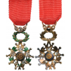 Knight`s Cross Miniature De Luxe with Brilliants, 3rd Republic (1870-1940), 5th Class. Breast Badge, 24x16 mm, GOLD with brilliants, enameled, central medallions GOLD, enameled, original GOLD suspension ring and ribbon. A splendid miniature of large size of spectacular appearance and quality! I R!