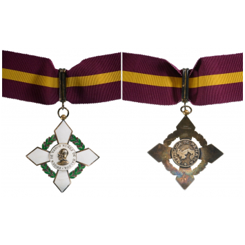 Commander`s Cross, instituted in 1941. Neck Badge, 58 mm, gilt Silver, maker's mark "Vilanuebo", one side enameled, original ring, loop and ribbon. Extremely fine! I