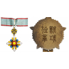 3rd Class, instituted in 1936, in gilt Silver, one side enameled, original suspension device with inscriptions on reverse and ribbon. Very rare order in perfect condition! Dim.: the badge, 95,0x73,0 mm. I RR!