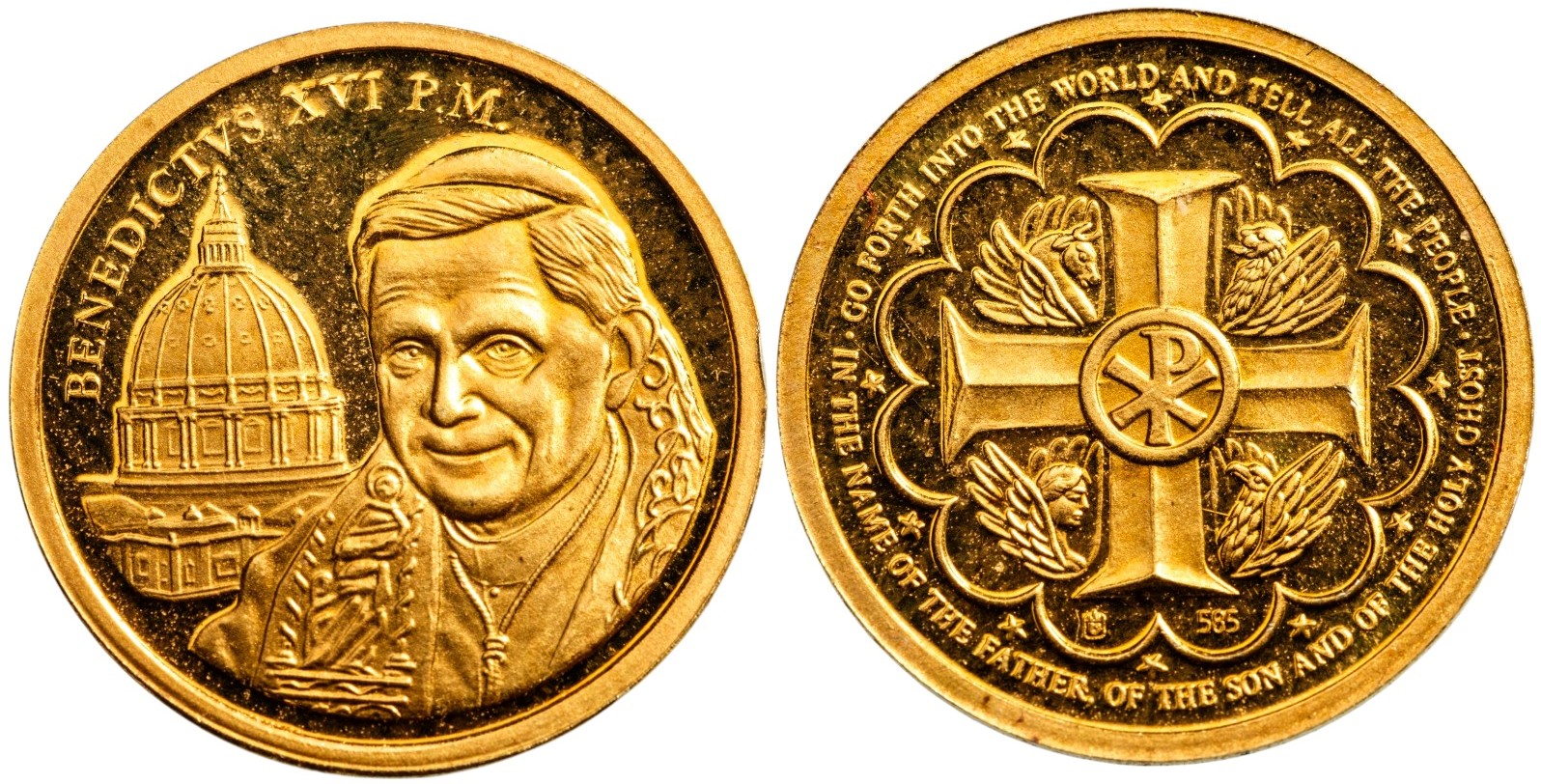 SKU: 741 The Live Auction begins in: Click here to register for the live Auction Starting price 100 EUR Log in to place a bid. Total bids: 0VATICANGold, 1.6 g., 14 mm., UNC! Shop ID: HAR108Auction LXIX