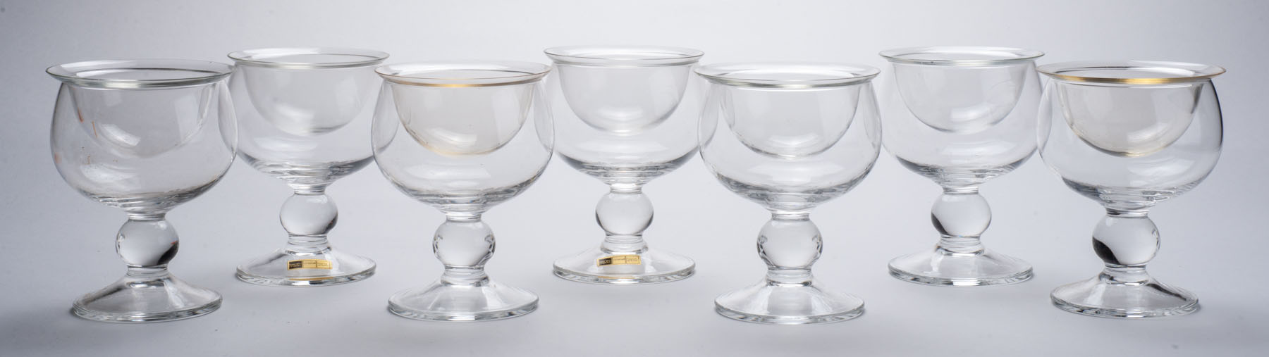 SKU: 950 The Live Auction begins in: Click here to register for the live Auction Starting price 200 EUR Log in to place a bid. Total bids: 0VARIOUS OBJECTSNice elegant caviar set consisting of seven clear crystal cups, pedestal model, umbilicus leg, complete inner chambers in composite. Height 14 cm. Good condition. Shop ID: 80747Auction LXIX