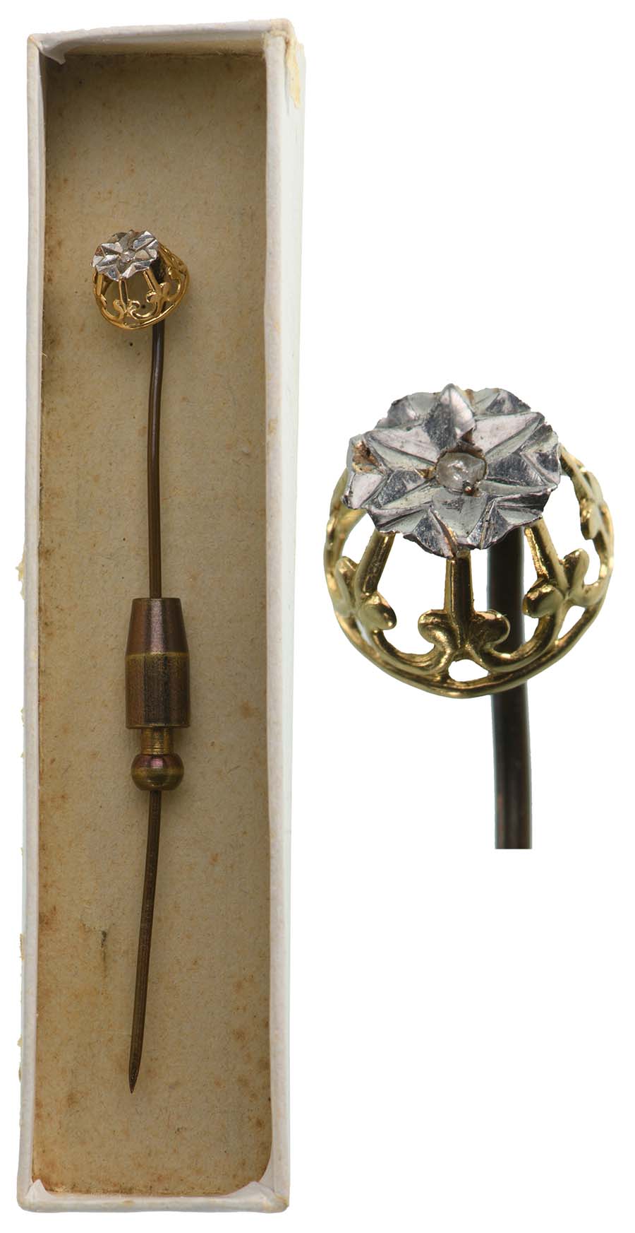 SKU: 815 The Live Auction begins in: Click here to register for the live Auction Starting price 100 EUR Log in to place a bid. Total bids: 0JEWELLERY - FRANCE18 k GOLD pin set with one diamond in the center. Beautiful French work in original case from "Maison Dumont-H. MEYLAN Succ". Superb! I- Shop ID: HM 1Auction LXIX