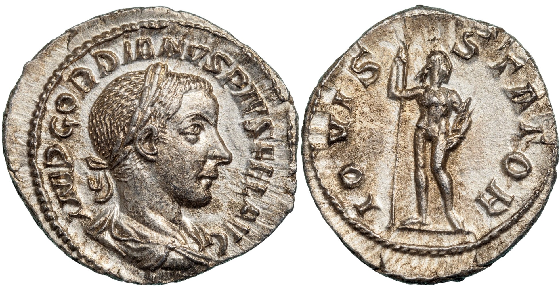 SKU: 51 The Live Auction begins in: Click here to register for the live Auction Starting price 80 EUR Log in to place a bid. Total bids: 0ROMAN EMPIREIMP GORDIANVS PIVS FEL AVG, laureate, draped and cuirassed bust to right/ IOVIS STATOR, Jupiter standing facing, head to right, holding thunderbolt and sceptre. RIC IV 112. UNC Shop ID: 60i90Auction LXIX