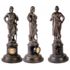 Large bronze mantel clock with dark patina about the great Hippocrates at full length, draped in an ancient toga, supported by the serpent caduceus symbol of medicine and pharmacy. Blackened turned wooden terminal base with Arabic numerals dial. Probably French, work from the late 18th century for the bronze, mid-19th century for the clock. Dimensions 50 cm overall, 32 cm for the statue alone. Good general condition despite wear to the patina. Very attractive and imposing!