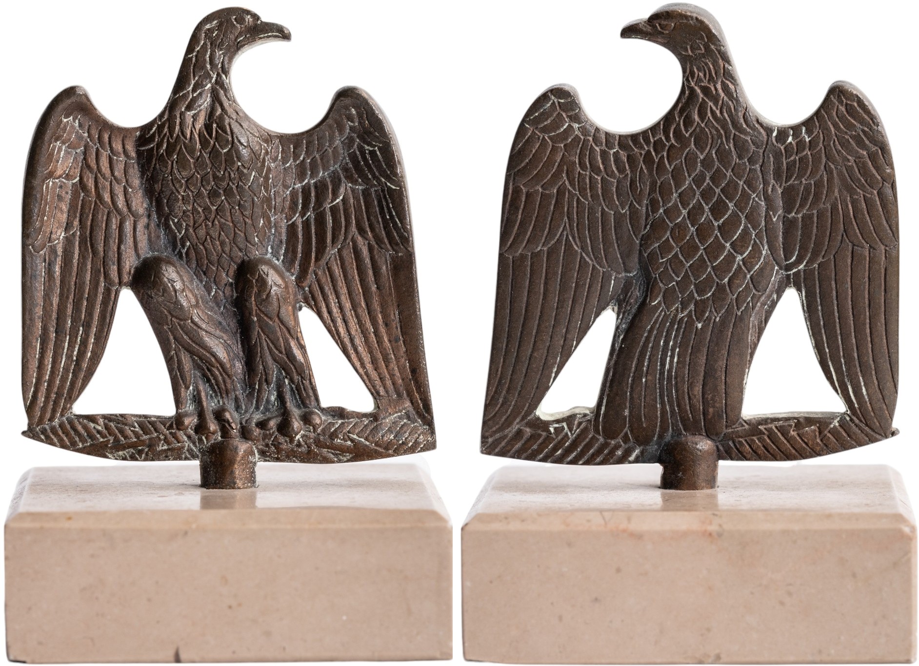 SKU: 750 Auction has finished. Total bids: 0DECORATIVE ARTS - BRONZE STATUES - FRANCEImperial Napoleonic Eagle on stand in bronze. Dim.: 60x57 mm. Perfect condition and attractive! Shop ID: 69,361Auction LXIX