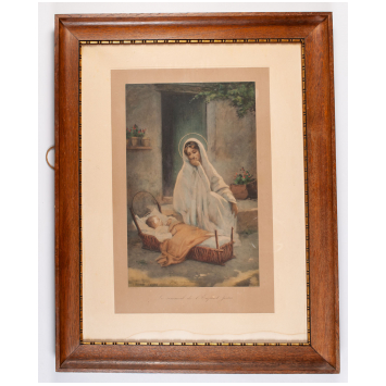 By Edouard Cabane , engraved by Hel. Braun & Cie - The sleep of the child Jesus, copyright 1907 by Cabane, large color engraving 63 x 41 cm in view. Beautiful condition of freshness (wetness on the framing cardboard). Print of good quality, original frame in oak. Good condition