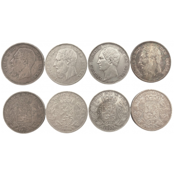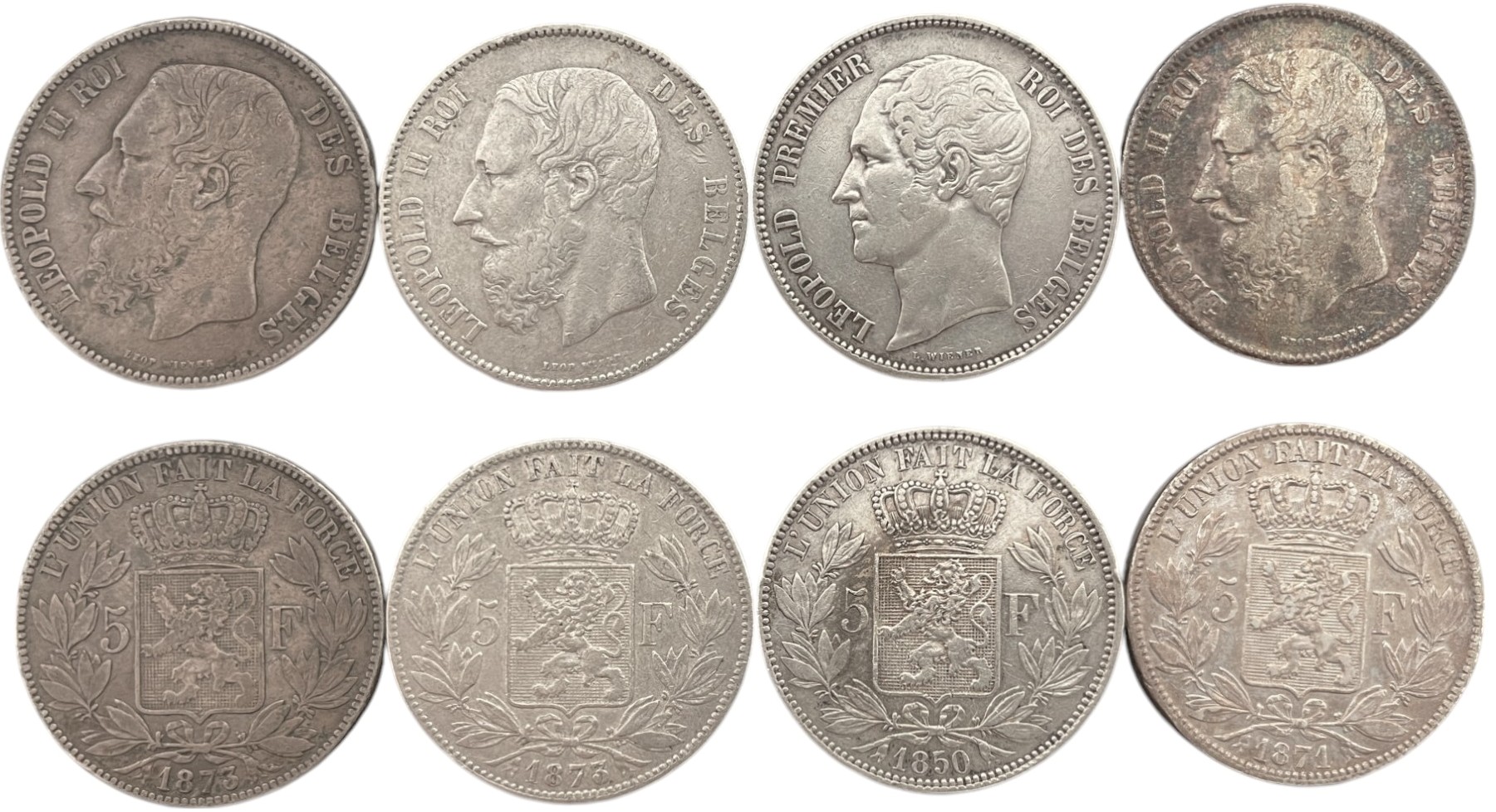 Leopold I and Leopold II, 5 Francs 1850, 1871, 1873 (2). Lot of 4