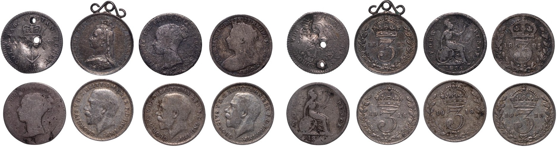 SKU: 278 The Live Auction begins in: Click here to register for the live Auction Starting price 80 EUR Log in to place a bid. Total bids: 0GREAT BRITAIN4 Pence 1922, 4 Pence 1838, 4 Pence 18(date not visile), 3 Pence 1887, 3 Pence 1895, 3 Pence 1916, 3 Pence 1916, 3 Pence 1919, 3 Pence 1925. (8) F-VF+ Shop ID: BX54Auction LXIX