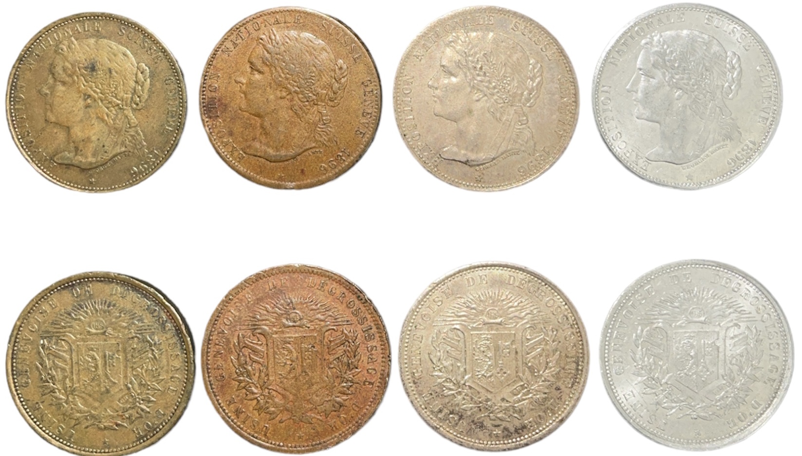 SKU: 657 Auction has finished. Total bids: 0SWITZERLANDSilvered Bronze, Bronze (2), Aluminium (31 mm). Forrer II 424/425. XF-UNC (4) Shop ID: CP 256Auction LXIX