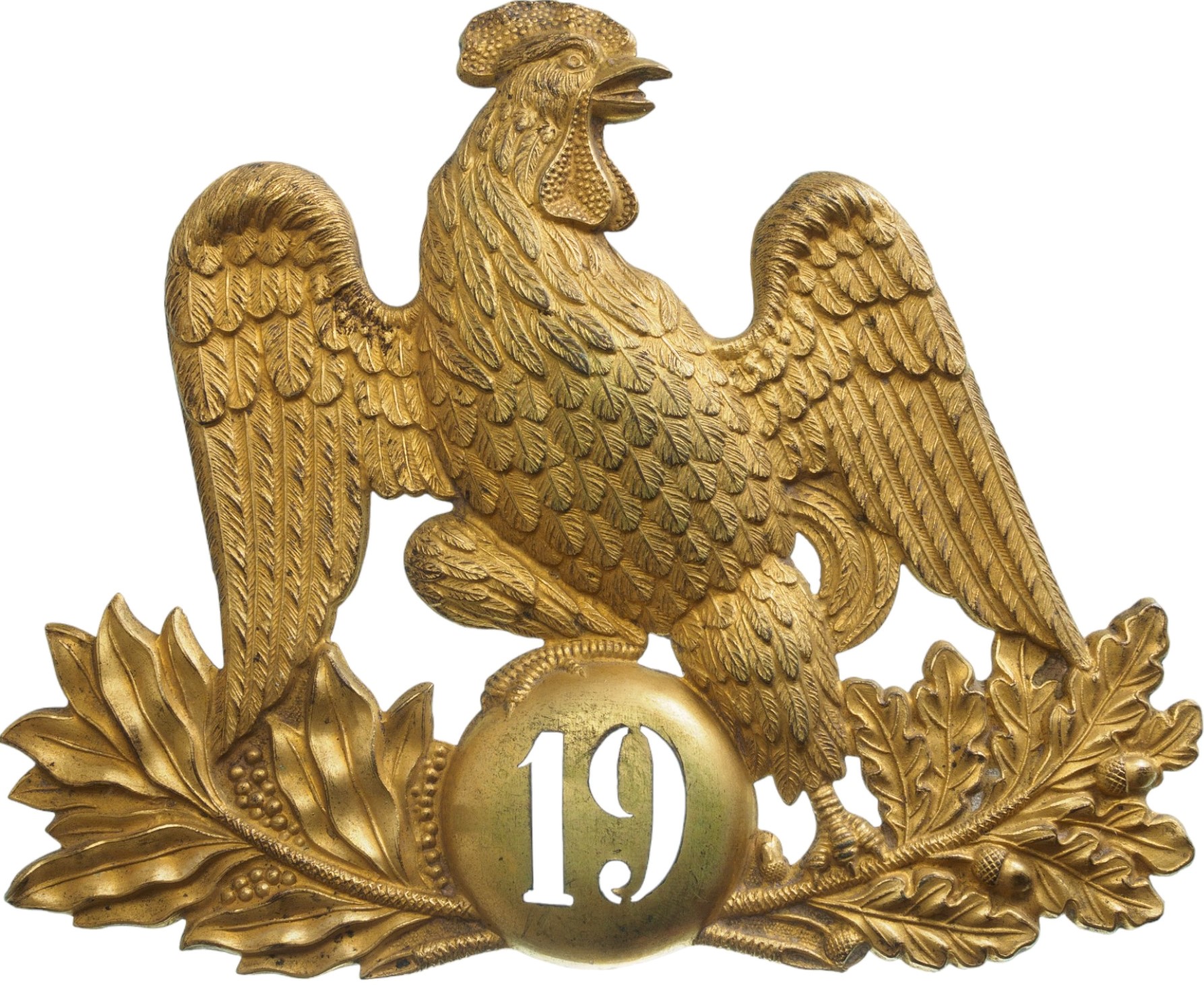 SKU: 824 The Live Auction begins in: Click here to register for the live Auction Starting price 80 EUR Log in to place a bid. Total bids: 0MILITARIA - FRANCEPlaque, 148x124 mm., gilt Brass, French rooster on globe, screw on reverse. Superb condition! I Shop ID: FBR25Auction LXIX