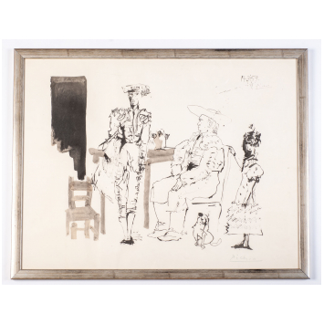By Picasso (Pablo) - Two picadores and woman, lithograph pochoir created in 1959, Print Paris 1967 numbered 1016/ 2000, dimensions 63 x 47 cm in view. Good condition.
