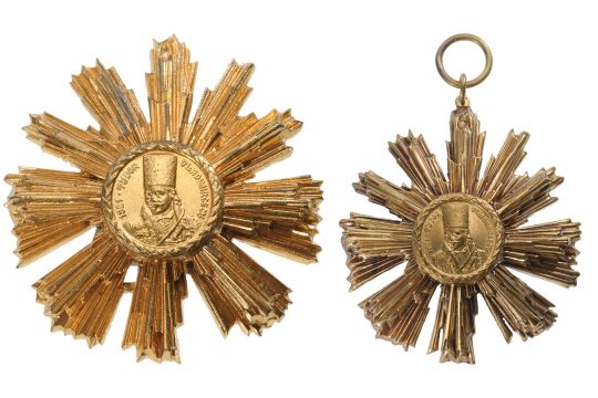 Set for Diplomates, 1st and 2nd Classes. Breast Stars, 56x53 mm, gilt Bronze, one with original suspension ring and one with pin back. Very rare! (2) I RR!