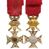 Jeweled Miniature of the order in gold, the arms, set with tiny Diamonds, enameled obverse and reverse centre medallions, suspension crown, consistent with this miniature, but of the early, Austrian type, suspension ring also set with diamonds, with original ribbon.