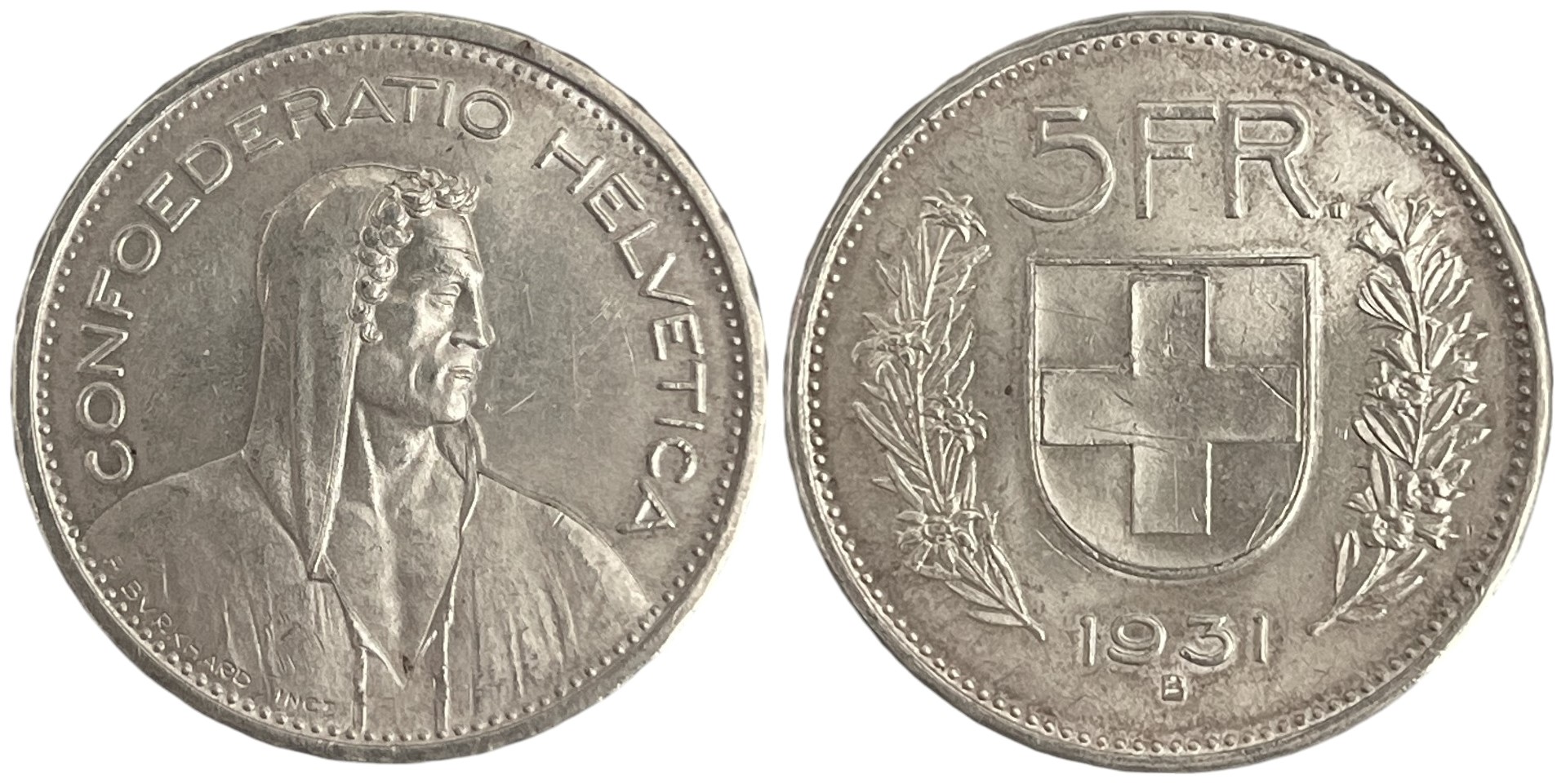 SKU: 713 Auction has finished. Total bids: 0SWITZERLANDSilver, 14,93 g., HMZ 2.1200, Divo/Tob1. 301, KM. 40, Schon. 36, Y. 36. Brilliant Uncirculated! Shop ID: Lausanne600Low estimate: 150.00 EURhigh estimate: 300.00EURAuction LXVII
