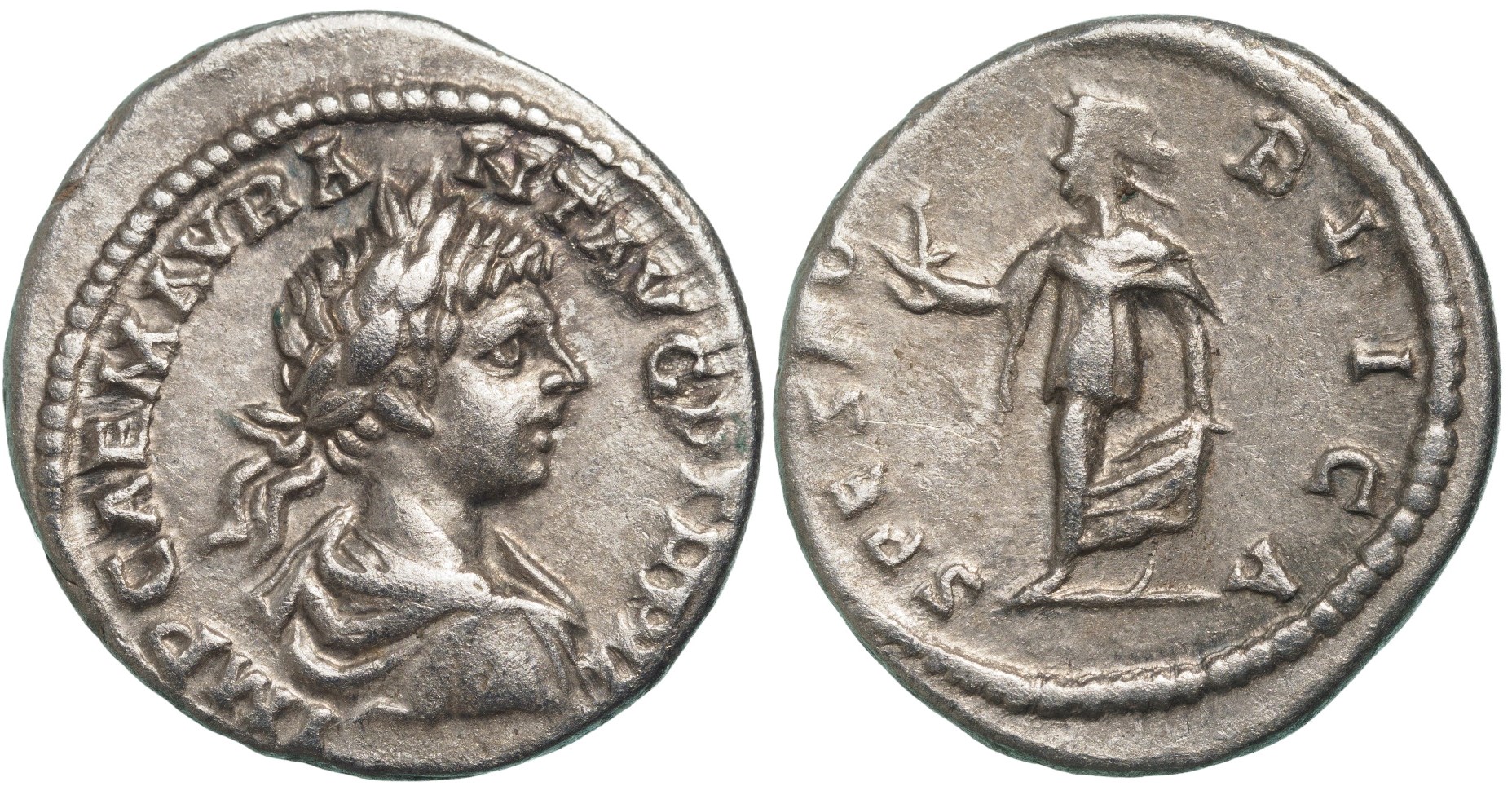 SKU: 44 Auction has finished. Total bids: 2ROMAN EMPIREIMP CAE M AVR A-NT AVG P TR P II, laureate drapped bust to right/ SPES PV-BLICA, Spes walking left holding flower and lifting skirt. RIC 341. XF Shop ID: 60i57Auction LXVII
