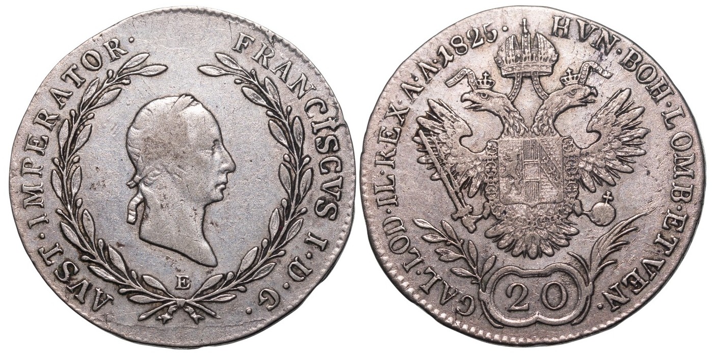 Franz I (1804-1835) 20 Kreuzer 1825 E, Alba Iulia mint