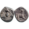 E-Φ Bee with bent wings/ (ΑΡΙΣΤΟΛΟΧΟΣ) Forepart of a stag to right, head turned back to left; behind to left, palm tree with two date clusters. SNG Copenhagen -. SNG Fitzwilliam 441. VF+