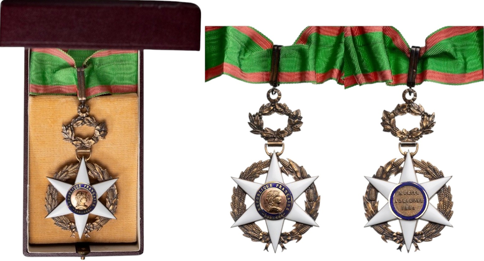 Commander`s Cross, 3rd Class. Neck Badge, 96x52 mm, gilt Silver, hallmarked, enameled, original suspension ring, loop and ribbon, in case of issue by "Arthus Bertrand - Paris". A superb old model in extremely fine condition! I