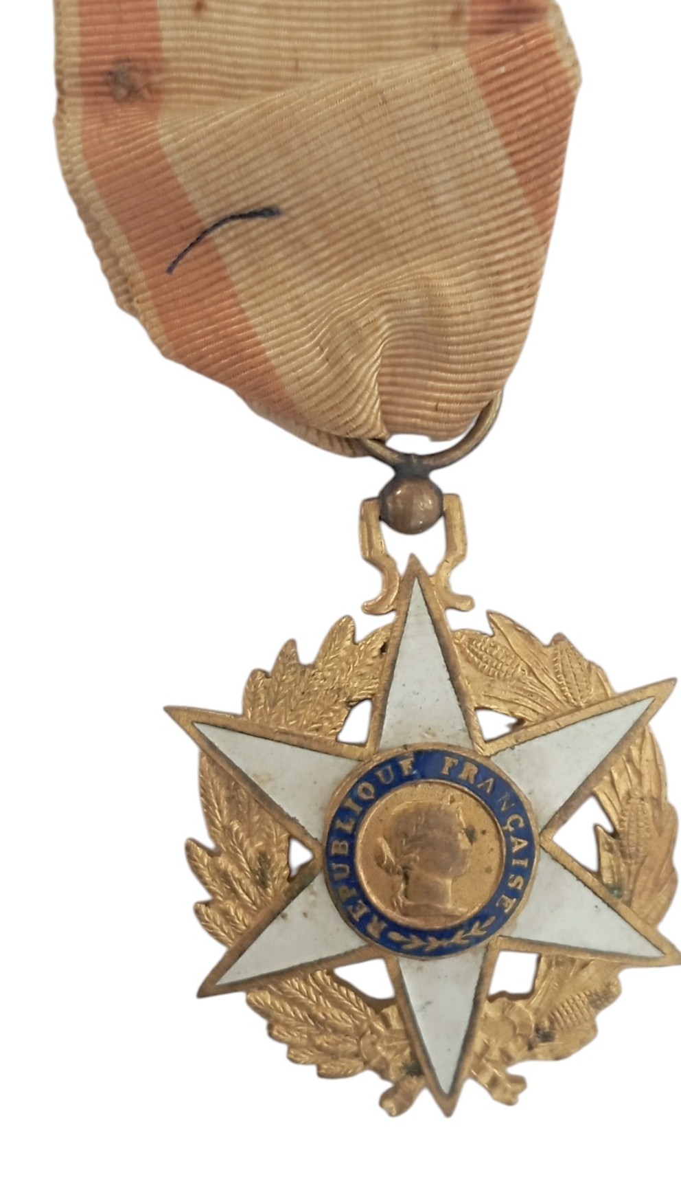 SKU: 552 The Live Auction begins in: Click here to register for the live Auction Starting price 25 EUR Log in to place a bid. Total bids: 0FRANCEKnight`s Cross, 5th Class. Breast Badge, 48x37 mm, gilt Bronze, one-side enameled, original suspension ring and ribbon. Very fine condition! II Shop ID: NEXT 156Auction LXX - Day 1