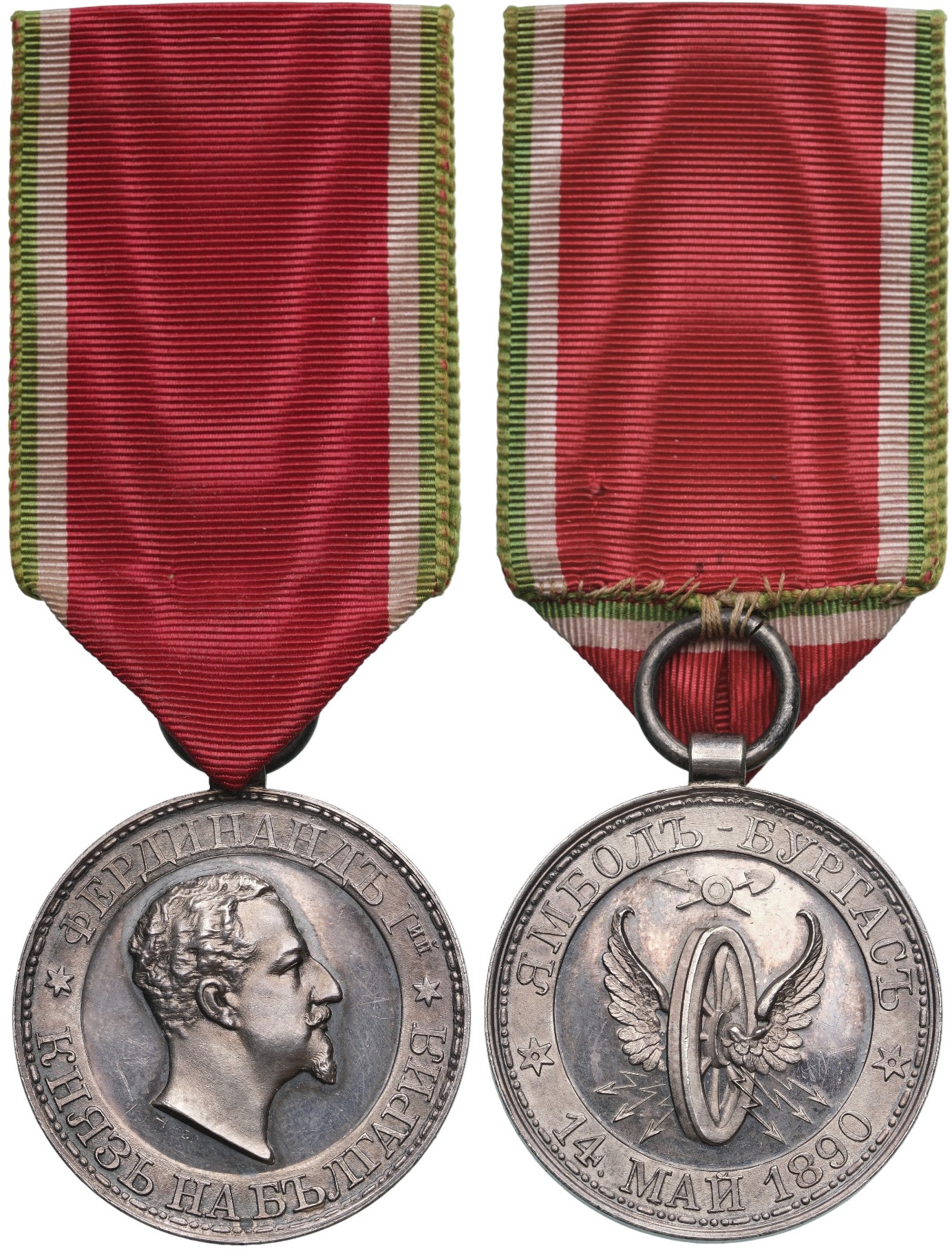 Construction of the Railroad Line from Yambol to Burgas Medal, Prince Ferdinand I, Silver Class, by Joseph Cristlebauer, instituted 14th/26th May 1890
