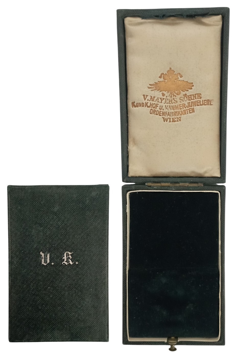 SKU: 30 The Live Auction begins in: Click here to register for the live Auction Starting price 30 EUR Log in to place a bid. Total bids: 0AUSTRIACase of Issue, instituted in 1850. Original case of issue, 93x58 mm., by "V.Mayer's & Sohne - Wien", with sivered monogram on the lid. A box in extremely fine condition! I Shop ID: 69,253Auction LXX - Day 1
