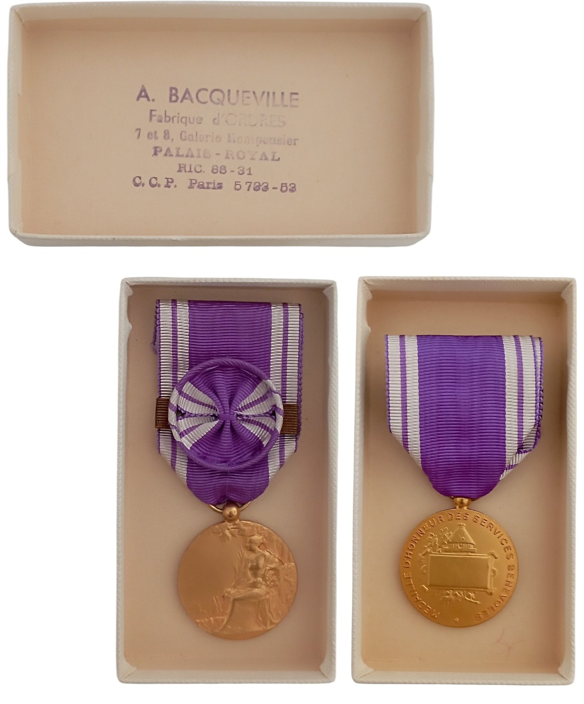 SKU: 633 The Live Auction begins in: Click here to register for the live Auction Starting price 40 EUR Log in to place a bid. Total bids: 0FRANCEOfficer's Class. Breast Badge, 37x32 mm, gilt Bronze, original suspension ring and ribbon with rosette, in case of issue by "A. Bacqueville - Paris". Scarce! I R! " Shop ID: 69,410Auction LXX - Day 1