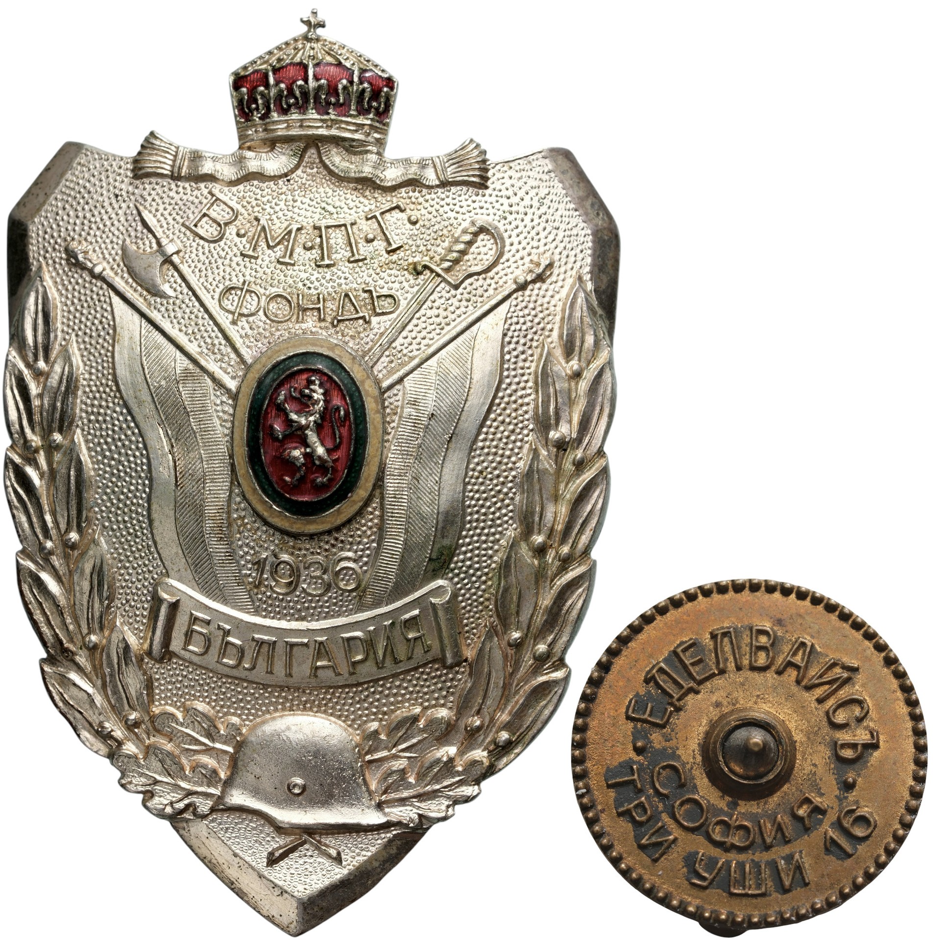 Breast Badge, 56x37 mm., silvered Bronze, original screw and bronze plate, maker's mark. Extremely fine condition and rare! I R!