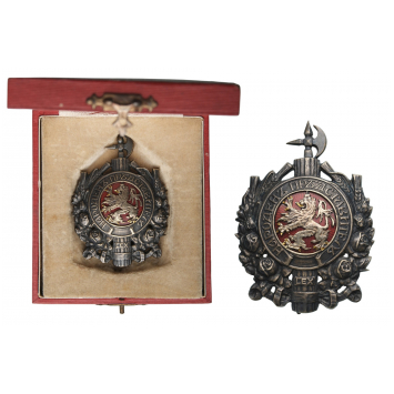 SKU: 354 Auction has finished. Total bids: 4BULGARIABreast Badge, 61x44 mm., Silver and Bronze, center enameled, original vertical pin on reverse, in case of issue. Very rare and superb, in best condition! I RR! Shop ID: ST109