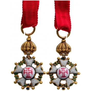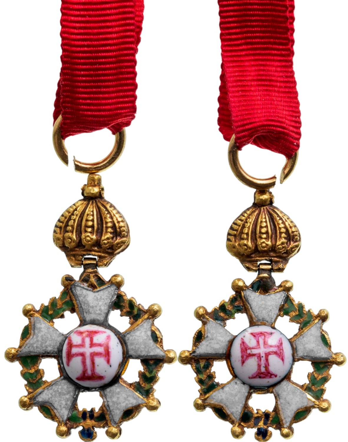 SKU: 103 The Live Auction begins in: Click here to register for the live Auction Starting price 200 EUR Log in to place a bid. Total bids: 0BRAZILKnight’s Cross of Reduced size. Breast Badge, 20x13 mm, GOLD, 1.3 g, and enamels, original suspension crown and ribbon. A very rare and superb early 19th Century badge, in very fine condition! II R! Shop ID: 33/62Auction LXX - Day 1
