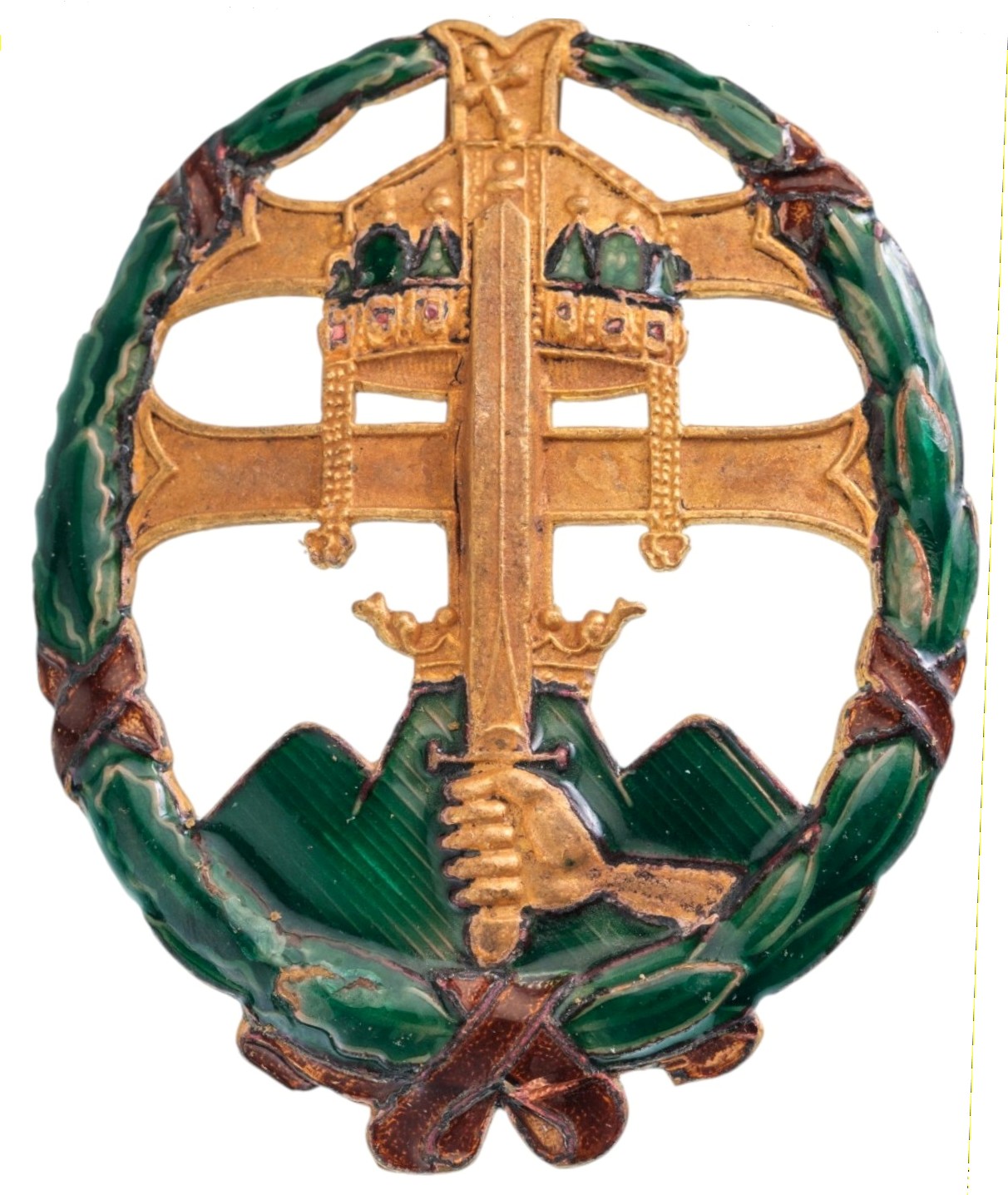 SKU: 849 The Live Auction begins in: Click here to register for the live Auction Starting price 100 EUR Log in to place a bid. Total bids: 0HUNGARYBreast Badge, 53Sx44 mm, gilt Bronze, one side enameled, original suspension rings. Extremely fine and scarce! I R! " Shop ID: BOG 2Auction LXX - Day 1
