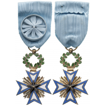 SKU: 92 The Live Auction begins in: Click here to register for the live Auction Starting price 70 EUR Log in to place a bid. Total bids: 0BENINOfficer's Cross, instituted in 1889. Breast Badge, 60x37 mm,, gilt Silver, both sides enameled, original suspension ring and ribbon with rosette. Almost extremely fine condition! I- Shop ID: 69,383Auction LXX - Day 1