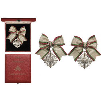 3rd Class Cross for Ladies. Breast Badge, 50x46 mm, silvered, original suspension ring and ribbon with bow, in case of issue, with gilt crown and inscription on the lid. A superb badge, in mint condition! I