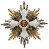 Grand Cross Star Republic Model, 1944-1950. Breast Star, 94 mm., superimposed, brilliant-cut and pierced gilt-silver and silver rays, the centre with white enamelled pointed cross and green enamelled oak leaves between the arms, obverse centre medallion with Bulgarian lion on red enameled ground, within white enamelled outer circlet with the cyrillic motto “FOR CIVIL MERIT” in gold lettering, “frosted” and polished reverse with four nuts retaining the elements of the obverse; polished centre disc broad pin. An excessively rare star, in best quality and condition! I RR!