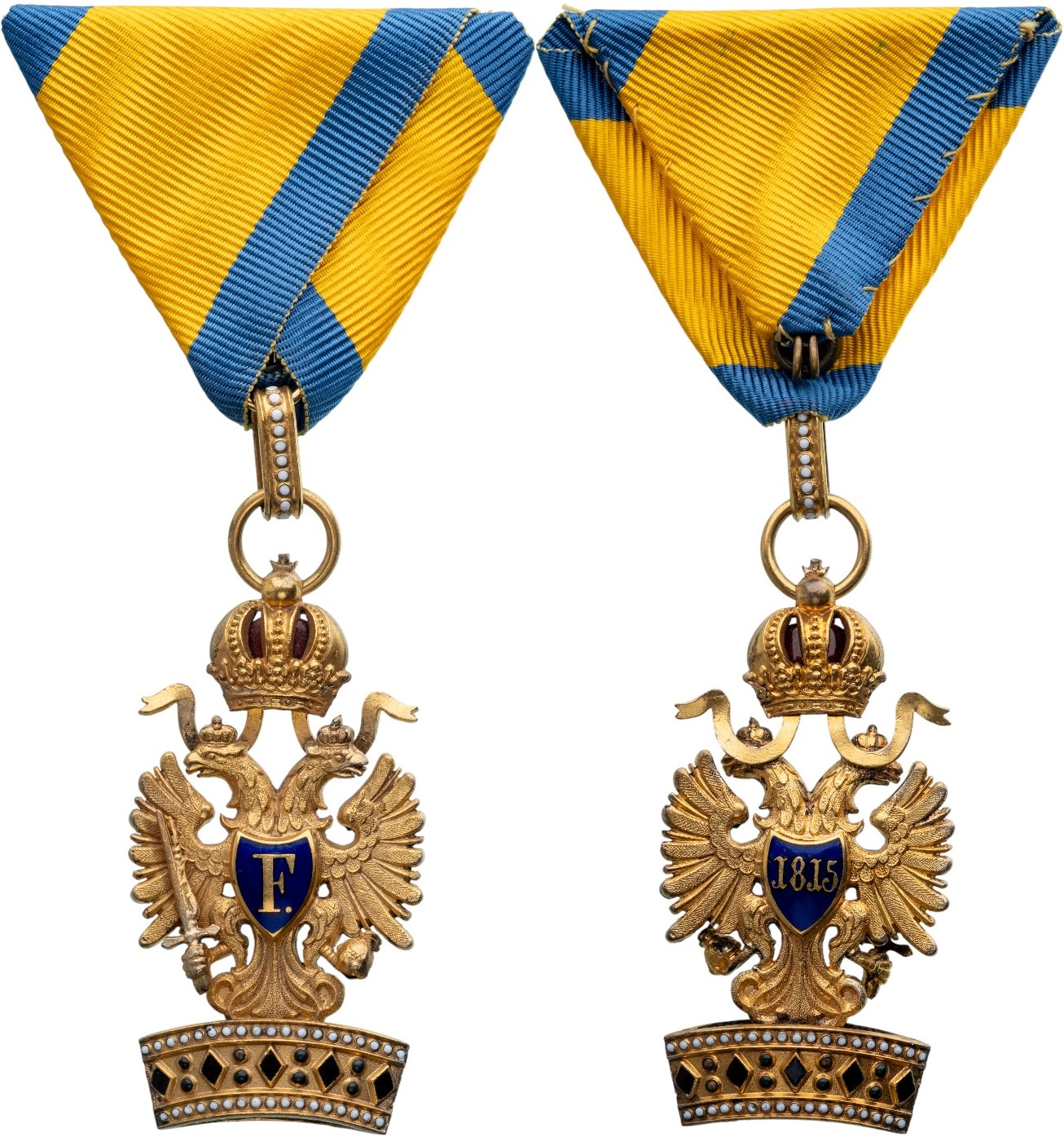3rd Class Badge, instituted in 1816. Breast Badge, gilt Bronze, enameled, 57x29 mm, original triangular ribbon. Superb badge in mint state! I
