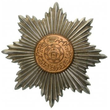 SKU: 2 The Live Auction begins in: Click here to register for the live Auction Starting price 120 EUR Log in to place a bid. Total bids: 0AFGHANISTAN2nd Class Star. Breast Star, 81 mm., Silvered, superimposed part gilt, reverse with long vertical pin. Extremey fine! I Shop ID: 03/05Auction LXX - Day 1