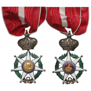 Knight`s Cross, 4th Class, instituted in 1849, Breast Badge, 64x41 mm., GOLD and Silver, both sides enameled, both central medallions Gold, enameled, original suspension ring and ribbon. Extremely rare order in high jeweller's quality, best condition! Awarded for 10 Years only! I RR!