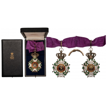 Commander's Cross, instituted in 1832. Neck Badge, 92x57 mm, Silver, hallmarkes "950", both sides enameled, both central medallions enameled, original suspension ring and ribbbon, in original case of issue with gilt weapons on the lid. I