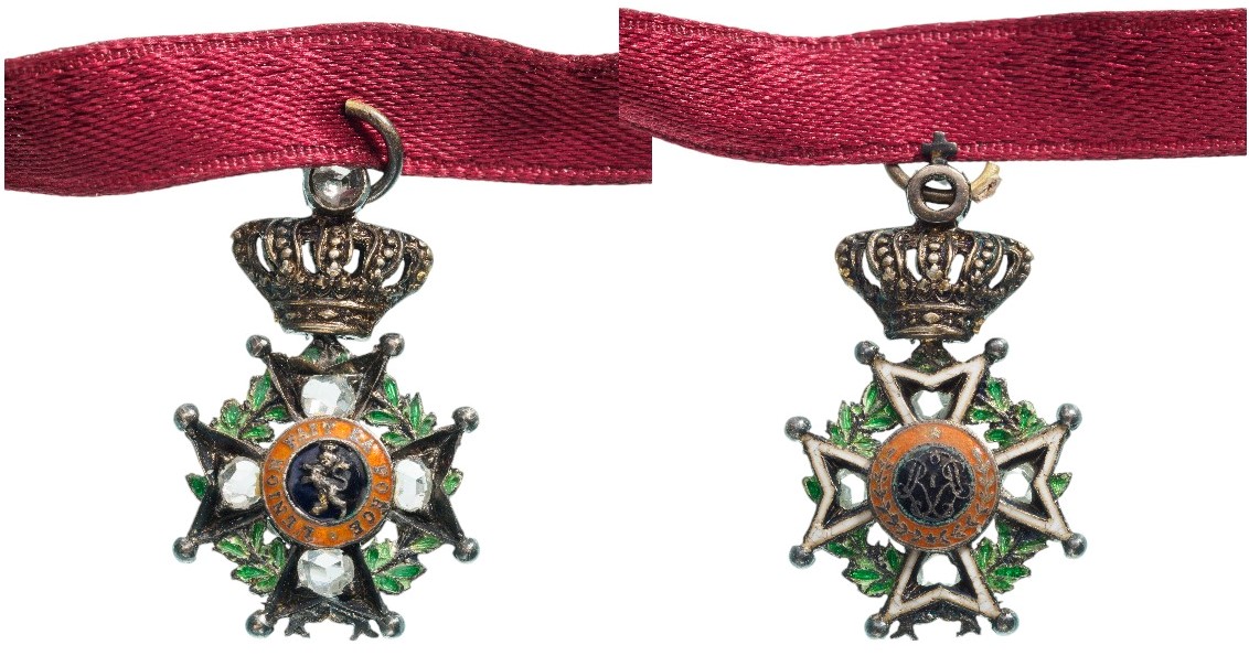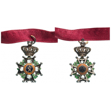 Knight's Cross Miniature in Diamonds, 5th Class, instituted in 1832. Breast Badge, 24x15 mm, Silver with 4 big Diamonds, both sides enameled, both central medallions enameled, original suspension ring and ribbon. I R!