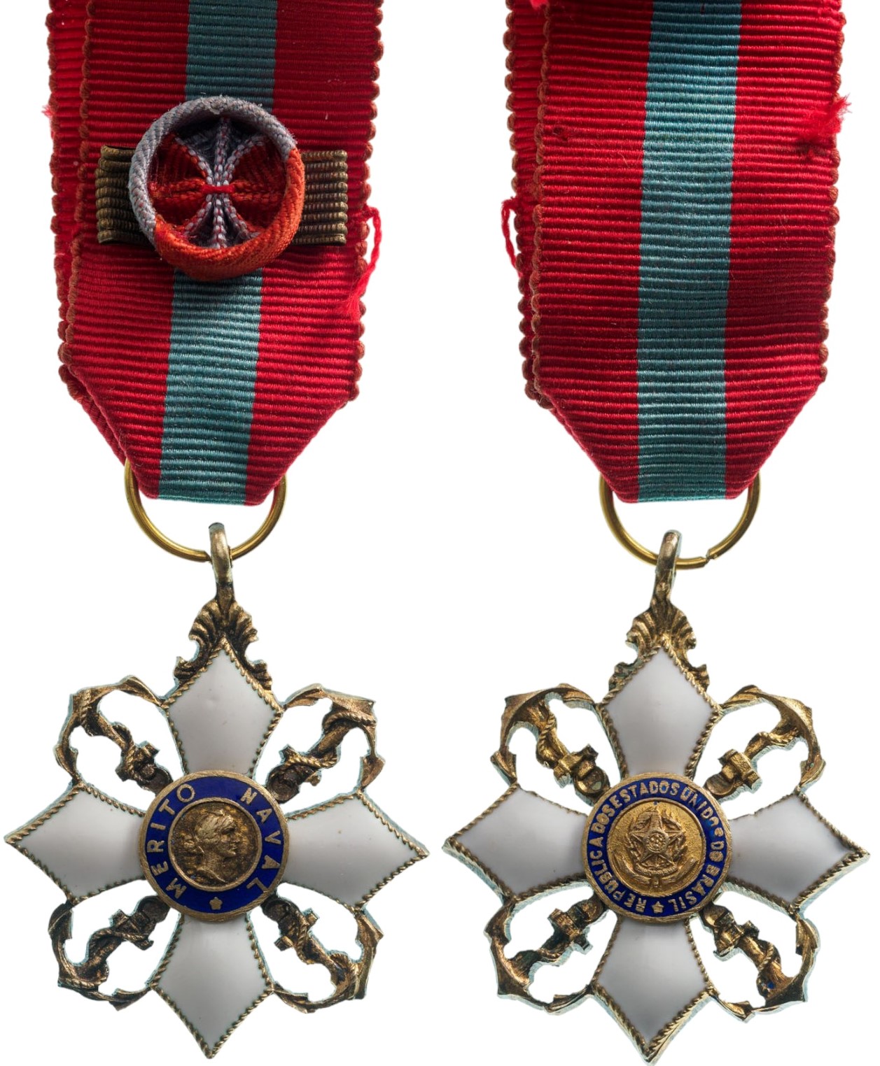 SKU: 115 The Live Auction begins in: Click here to register for the live Auction Starting price 40 EUR Log in to place a bid. Total bids: 0BRAZILCommander`s Cross, instituted in 1934. Breast Badge Miniature, 32x26 mm, gilt Silver, enameled, original suspension ring and ribbon with rosette. A very large and superb miniature! I Shop ID: DO 46Auction LXX - Day 1