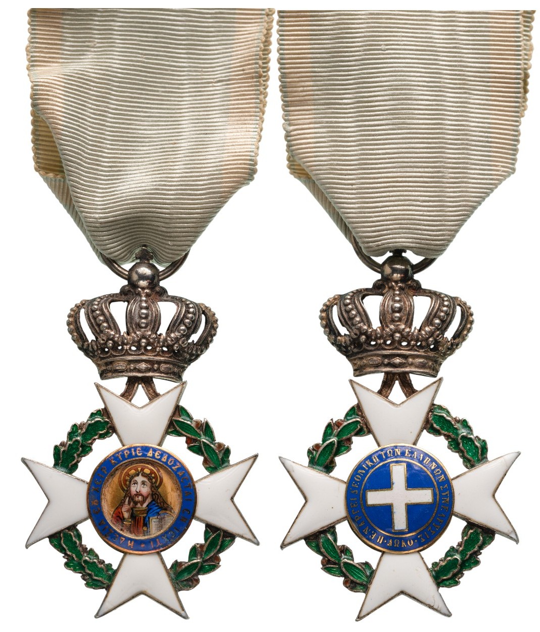 SKU: 793 The Live Auction begins in: Click here to register for the live Auction Starting price 80 EUR Log in to place a bid. Total bids: 0GREECEKnight's Cross, 54x34 mm, Silver, enameled, large, bulbous crown, original suspension ring and ribbon. Extremely fine! -I Shop ID: NEXT 211Auction LXX - Day 1