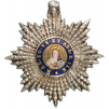 Grand Cross Miniature Breast Star, 10 mm, with chiseled rays, retaining a fine, smooth patina, centre medallion gilt with portrait of Christ in enamel miniature painting (some damages), with round suspension ring. A rare miniature! II R!